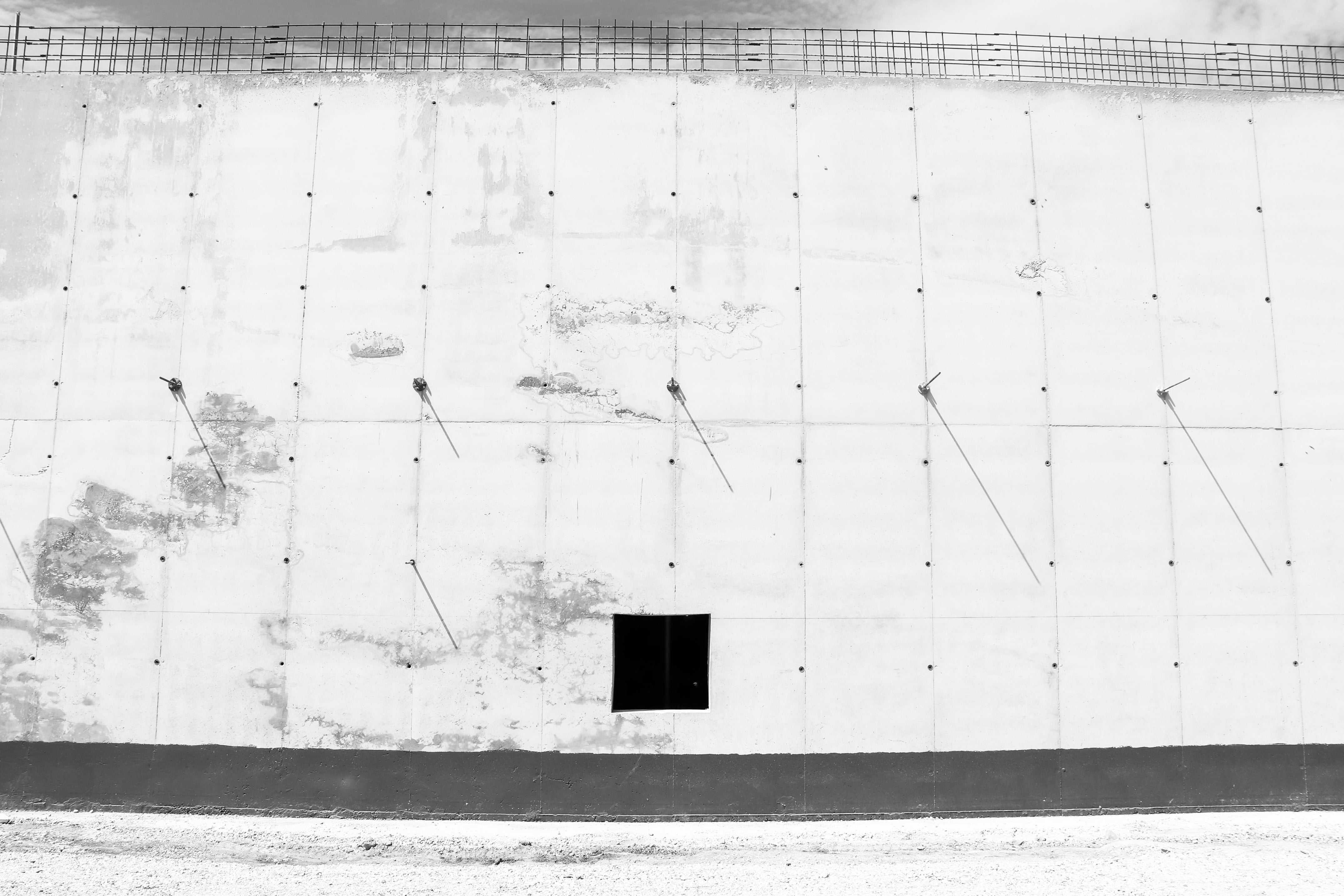 De la masse ondulante des vignes émerge une longue construction de pierre chaulée, naveta contemporaine au faîtage incliné, tumulus en hommage au vin. Malgré tant de minéralité, une étrange sensation de mouvement; la partie visible du chai est-elle soulevée par les entrailles de la terre, ou s’y ancre-t-elle comme un bateau s’échoue ?