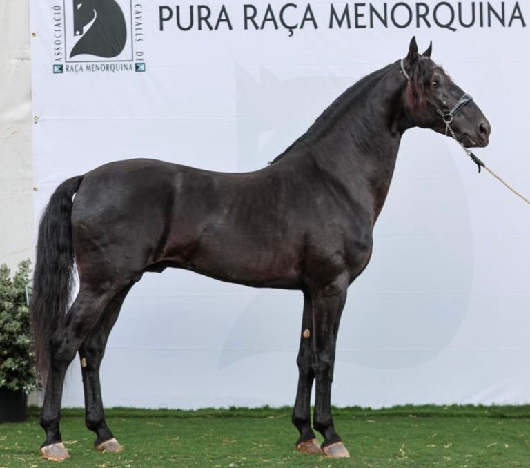 The precise markers of the Menorcan breed draw a horse with singular elegance. Noble and robust, it is distinguished by its thin and elongated head, its small and curved ears and its narrow nostrils. Its dress must be black, all shades being allowed, from pangaré to jet black. Its flexibility and remarkable balance give its gaits their aerial dimension. For registration in the Minorcan Breed Registration Register, it must present parents registered in the Official Register, suitable for reproduction. If the Al Parico finca has been breeding horses since the 19th century, significant transformations have been made since 2013. Developments which have led to prestigious distinctions including the Best Ganaderia Prize in 2019, 2022,2023 and 2024 .